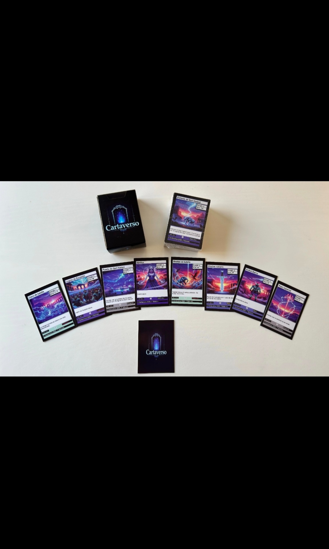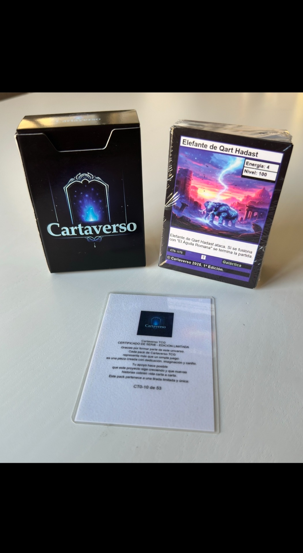 Primera edición limitada del juego de cartas Cartaverso. 75 cartas + 1 carta promocional exclusiva.